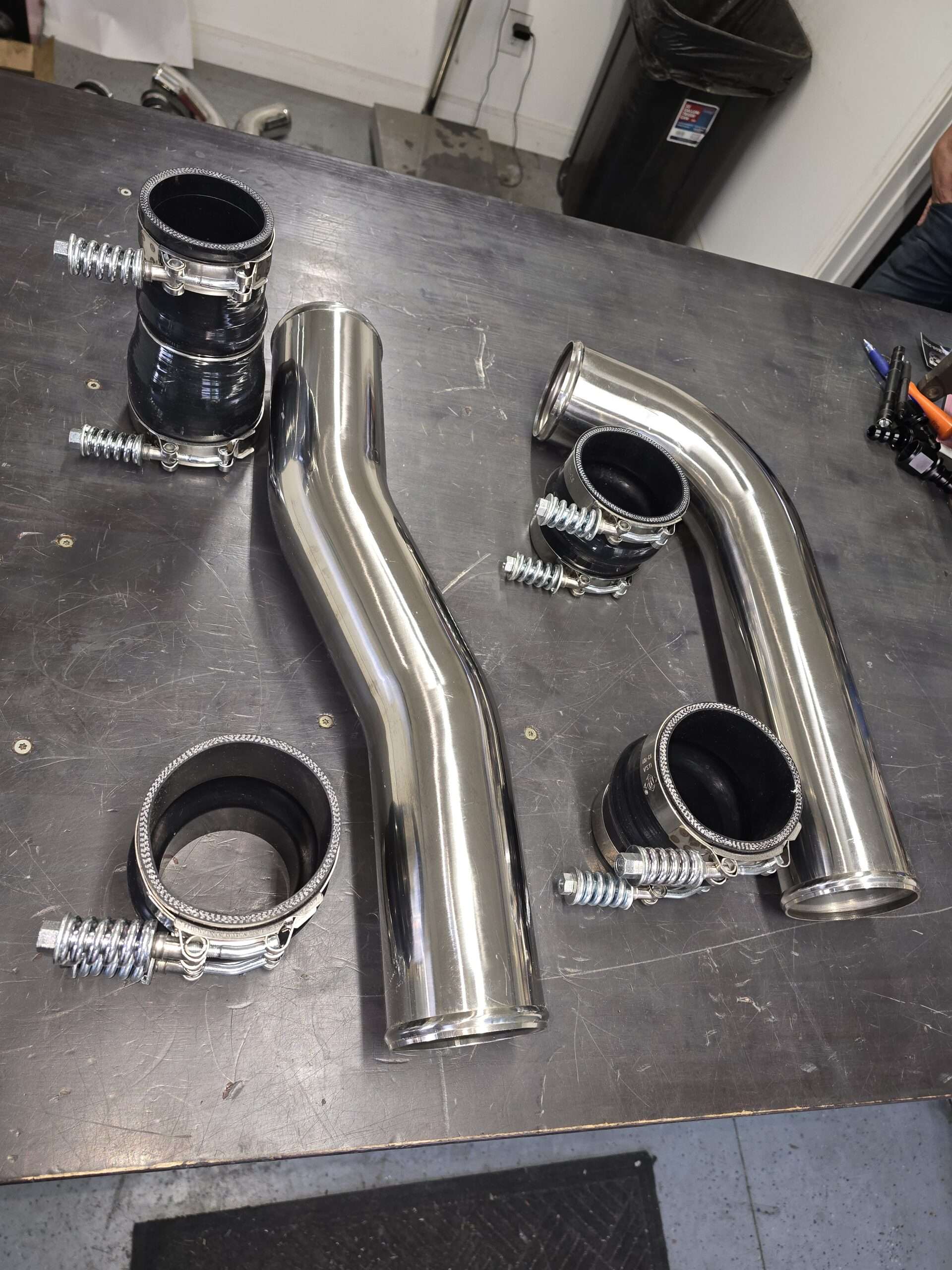 • Stainless steel 3.5″ intercooler pipes. ( factory is 3″) some years are plastic pipes.