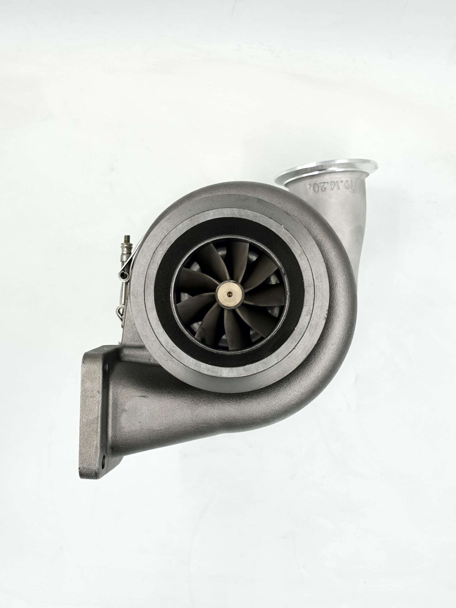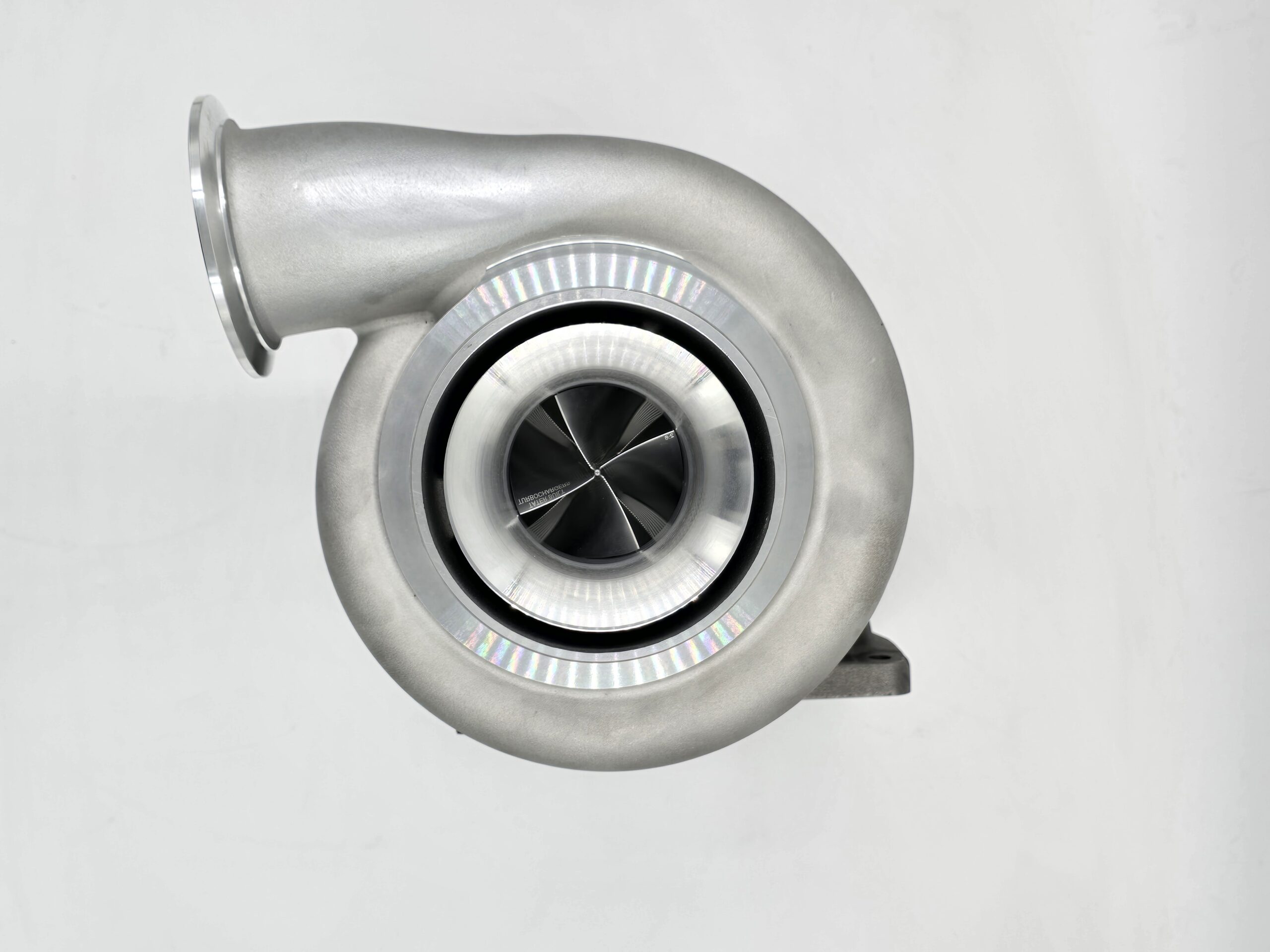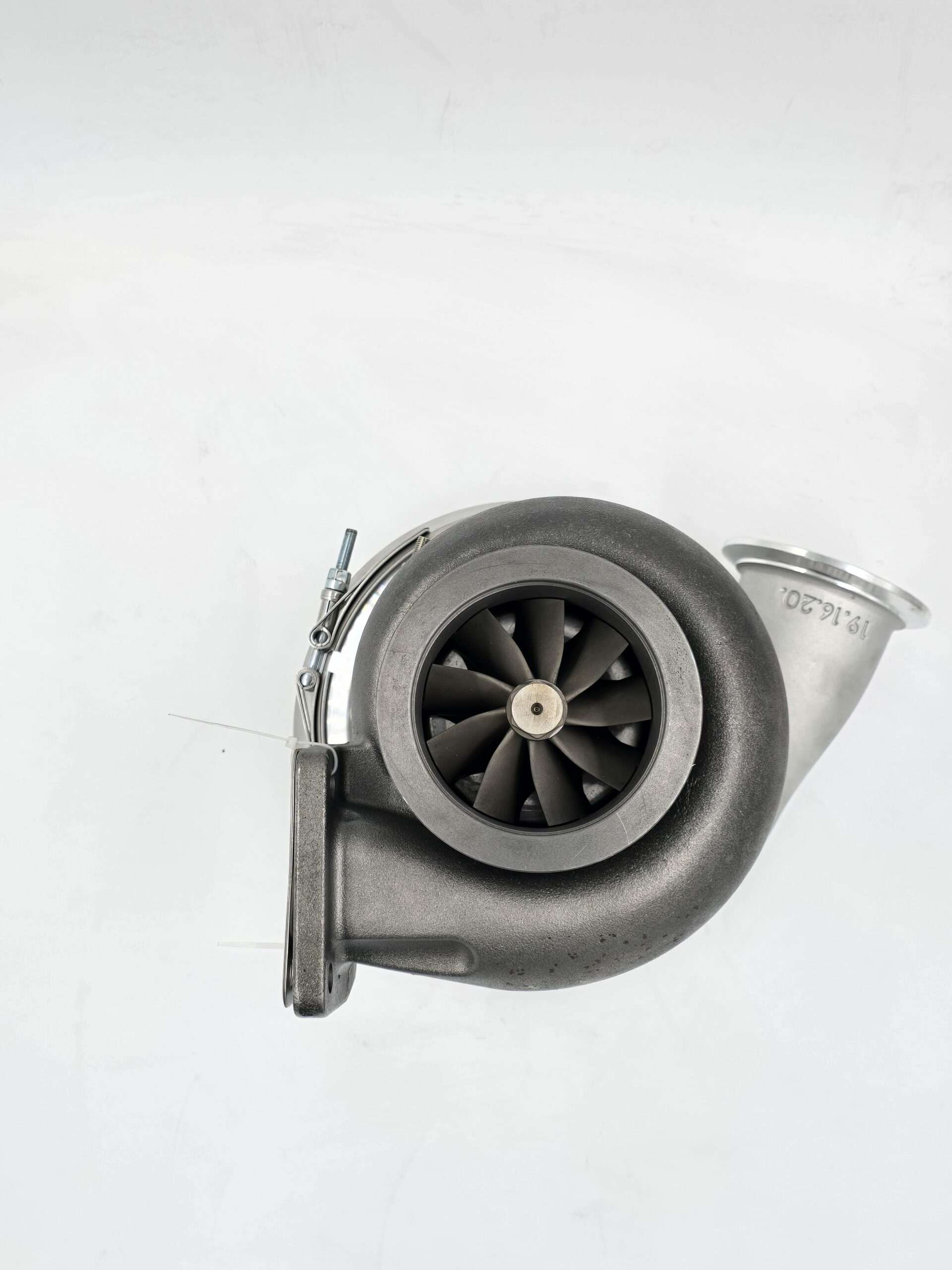 This is our competition 2.6 smooth bore pulling turbocharger, This turbocharger meets all Rules for COTPC, PPL, SEOPS, Full Pull, Liberty truck and tractor pull, OLPS, and so on. plugs 2.600″. It has our latest 2025 designed tripple 4 blade Boreless compressor wheel. Then paired with our 96×88 9blade G50 style turbine wheel, Our G50 style 9blade Turbine wheel is a instant drop of 20psi of drive pressure compared to the OE 96×88 10blade. Uses our custom Billet Dual Ball bearing center section that uses a Garret oe style G50 ball bearing carrier. We offer this with 3 Different style exhuast housings. A 1.25 Divided T4 with 4.62″ exhuast outlet flange, A 1.15 Divided T6 or a 1.32 Divided T6 with a 5.75″ marmon flange. Compressor cover is our 5″ Race cover machined to all our specs. Our 2.6 smooth bore turbocharger will hang with the best best of the best and will help keep you out front. But at a fraction of the cost of the big name smooth bore turbochargers.