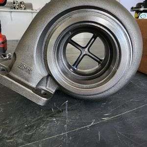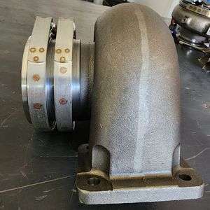 These are a direct bolt on turbine wheel guard that is mandatory typically when sled pulling and drag racing to keep everyone safe. This replaces having 3/8 or 1/2″ cross bolts put into your downpipe. This turbine guard is 3/8 wide cross design by 1 inch thick length wise. Made out of carbon 1045 steel. they will stop any turbine wheel that has failed and is trying to leave the turbo. They are made to Vband onto the rear of ANY T4 s400/4.62 outlet turbocharger. the flange is 4.62″ on both sides. they fit s400 T4 and G42 T4 and GT42 turbochargers. they sandwich between the turbo and downpipe Vband on both sides. This is a simple direct way but much stronger then normal cross bolts that you have to drill bolt through the downpipe.