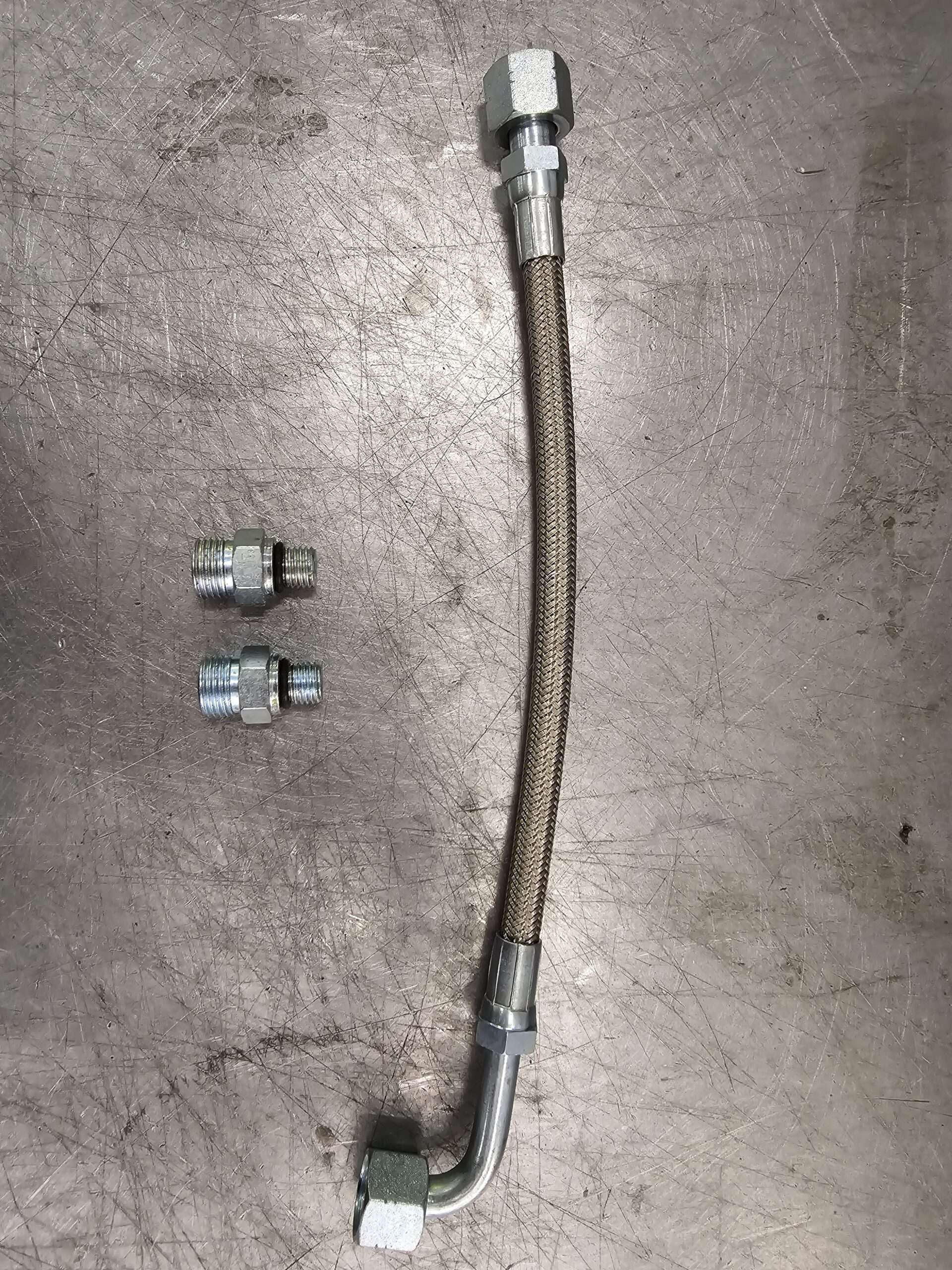 OE Fit and style/Replacement oil line for stock turbochargers and our upgraded Tater Buil Turbochargers. Comes with Oil Line and Both Oil Line Fittings to Turbocharger and Oil filter housing!